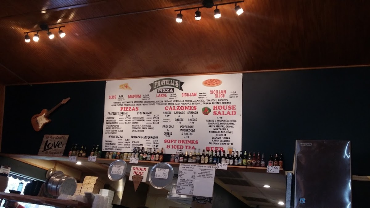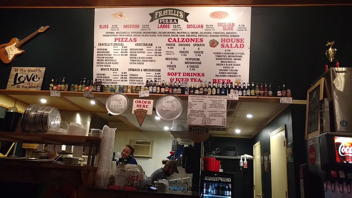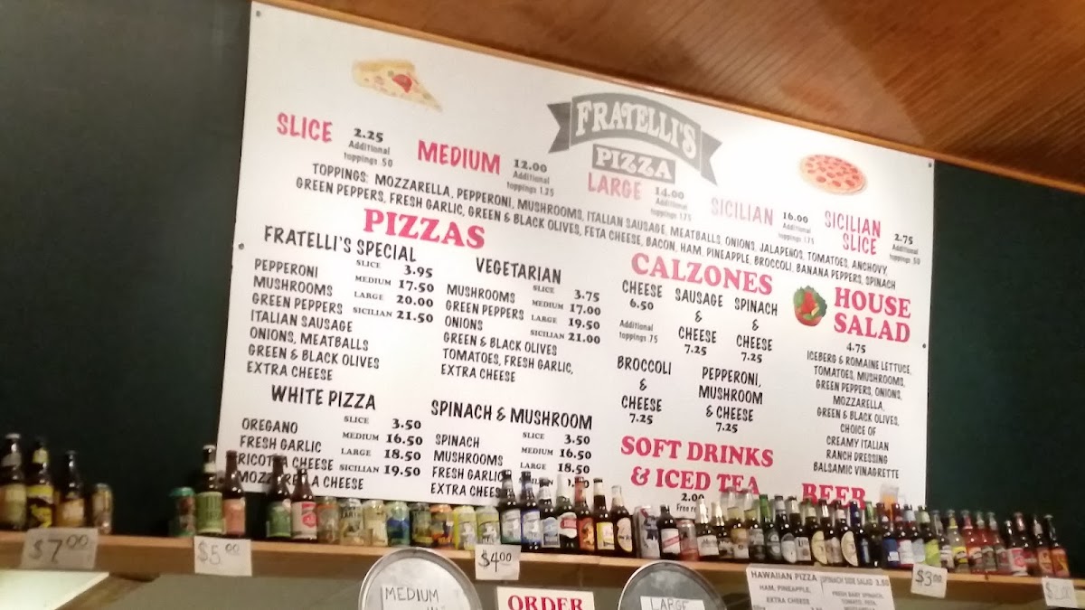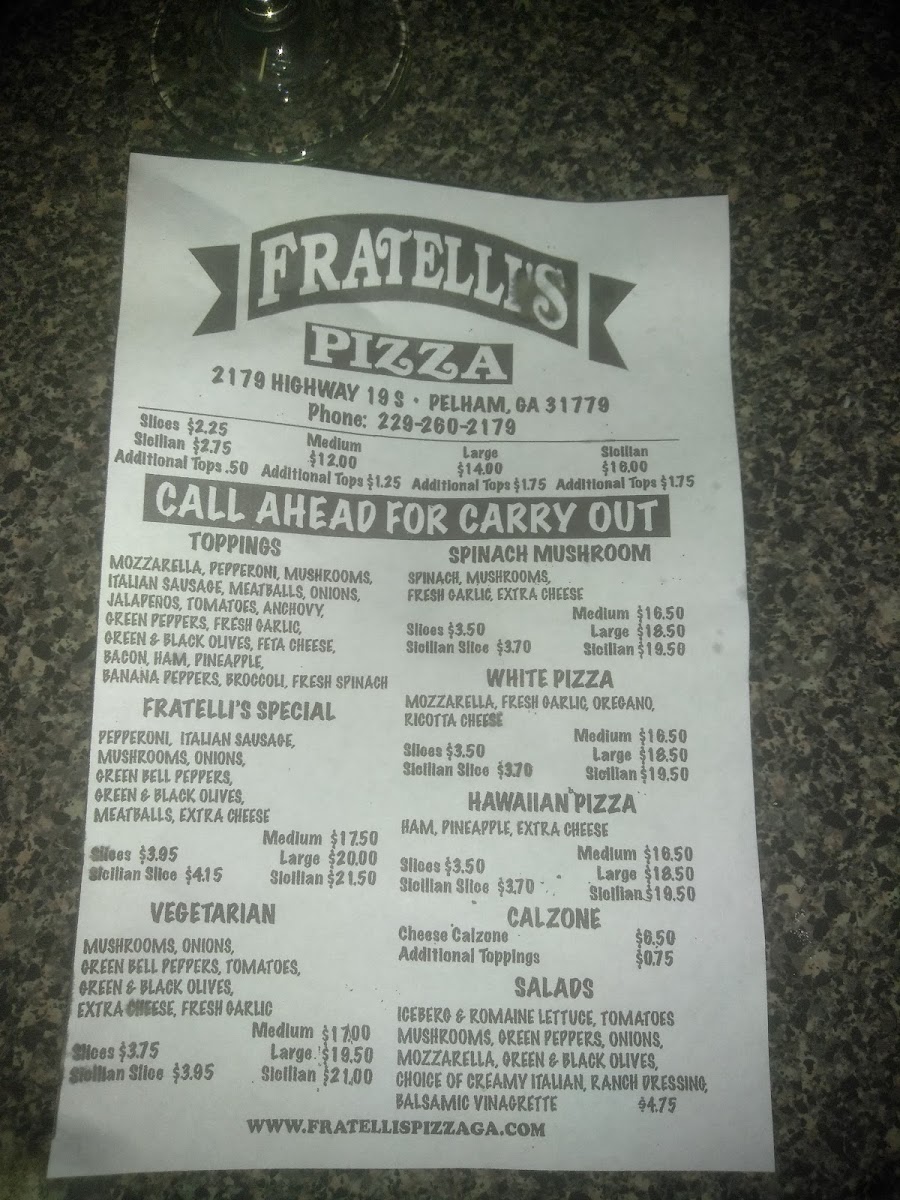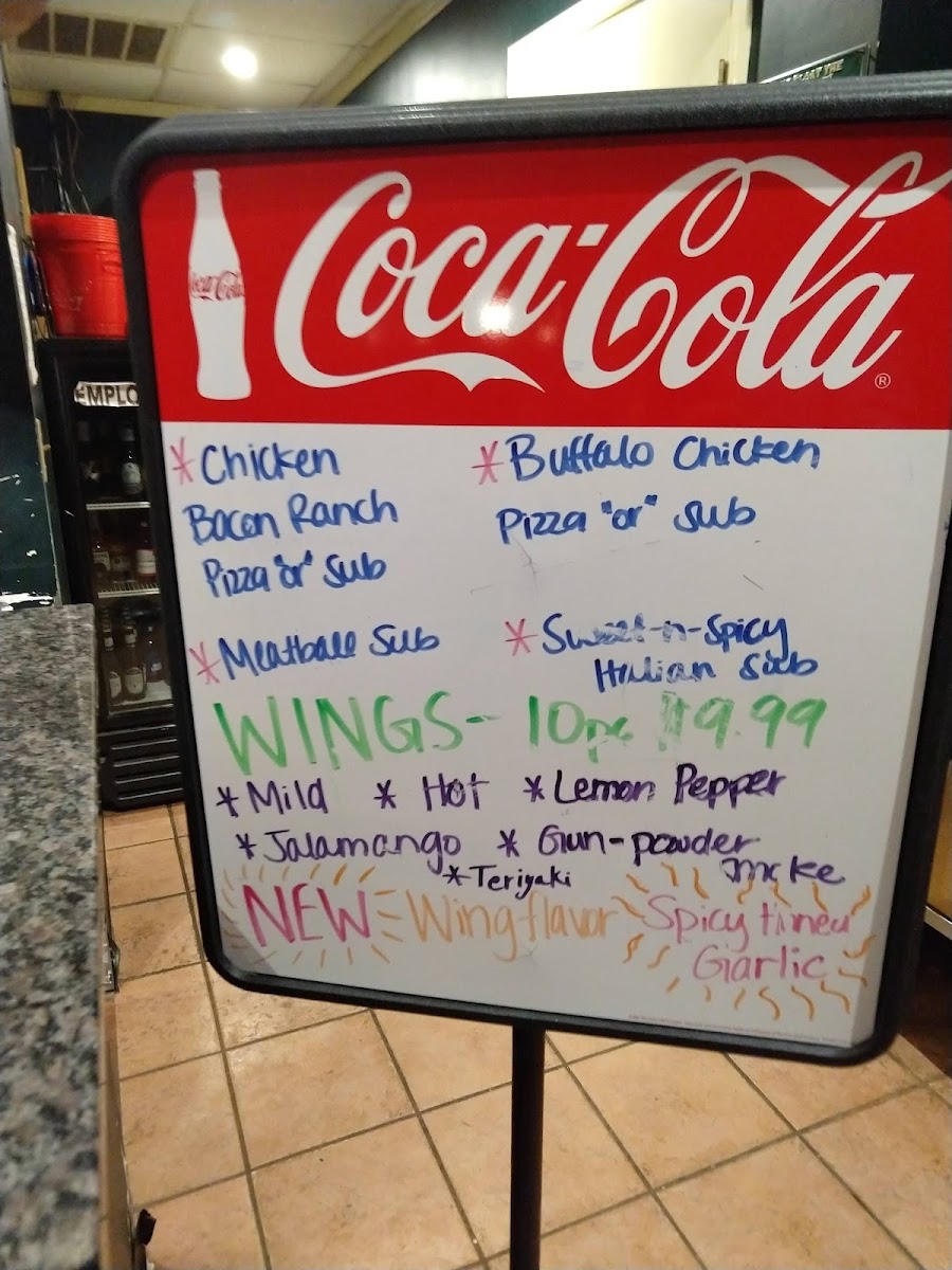 Pepperoni, Ham, Green Peppers, Onion, Black Olives, Mozzarella, Oil and Vinegar, Jalamango, Parmesan Oregano shake